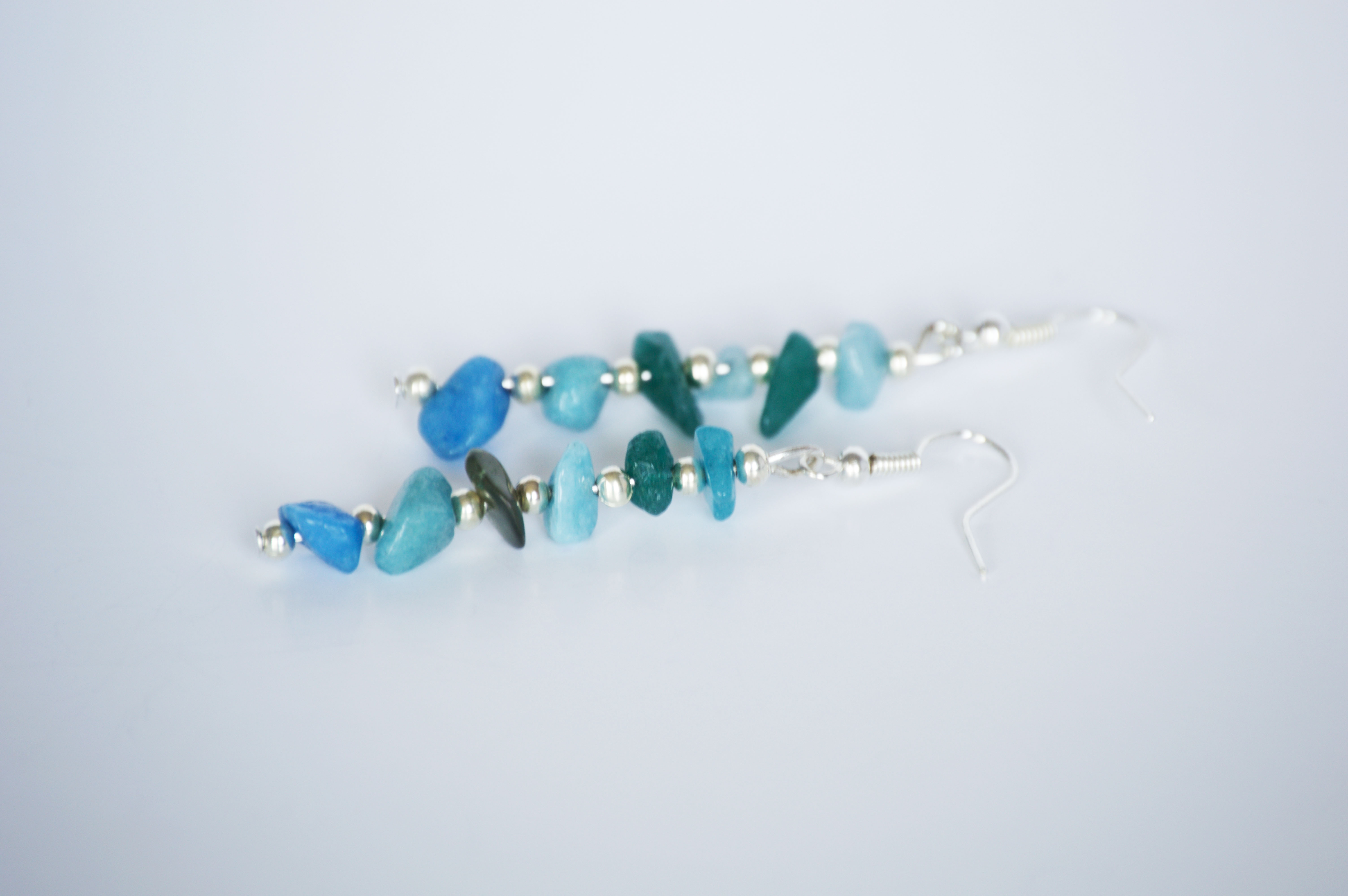 These lovely earrings are the perfect accessory to add a pop of color to an outfit! They each have six aqua mix quartz chips and seven silver beads. These earrings hang at approximately 1.75".