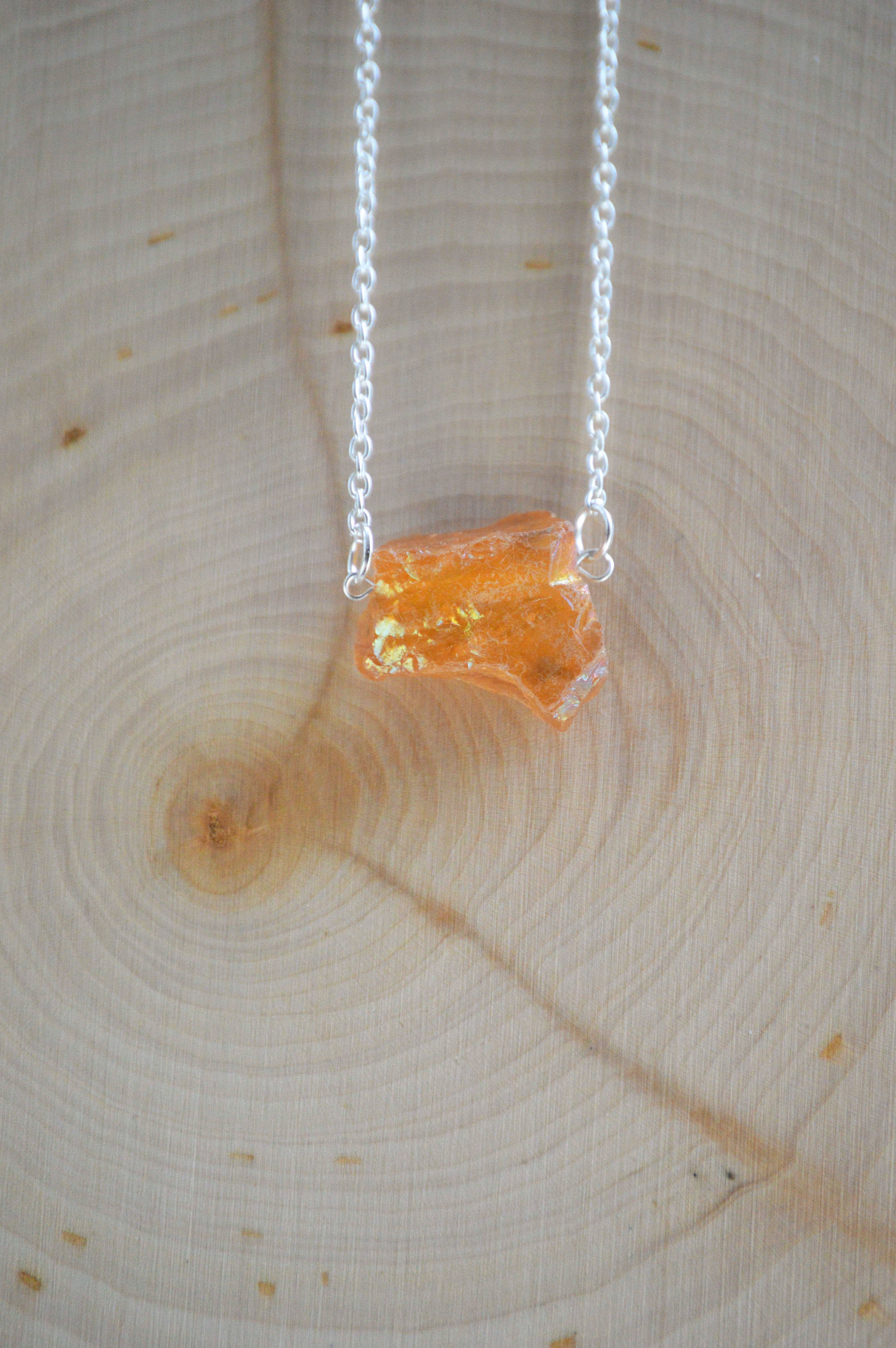 This gorgeous necklace is perfect for any outfit. It has one luster stone nugget on fine cable chain. The necklace is approximately 22" long and the pendant measures at 1” wide.