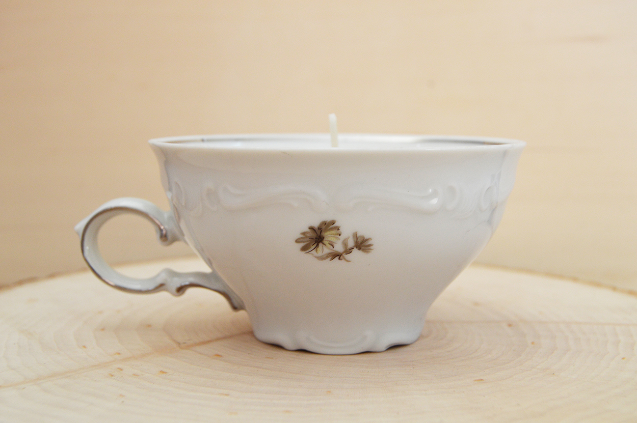 This beautiful teacup candle is one of a kind. Each teacup is handpicked, and each candle is hand poured with 4 oz of soy wax. This particular teacup candle is sugar cookie scented.