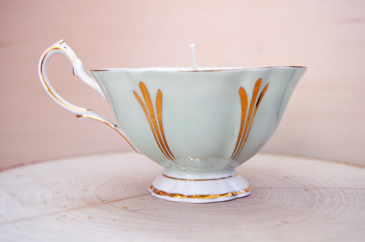 This beautiful teacup candle is one of a kind. Each teacup is handpicked, and each candle is hand poured with 4 oz of soy wax. This particular teacup candle is sugar cookie scented.